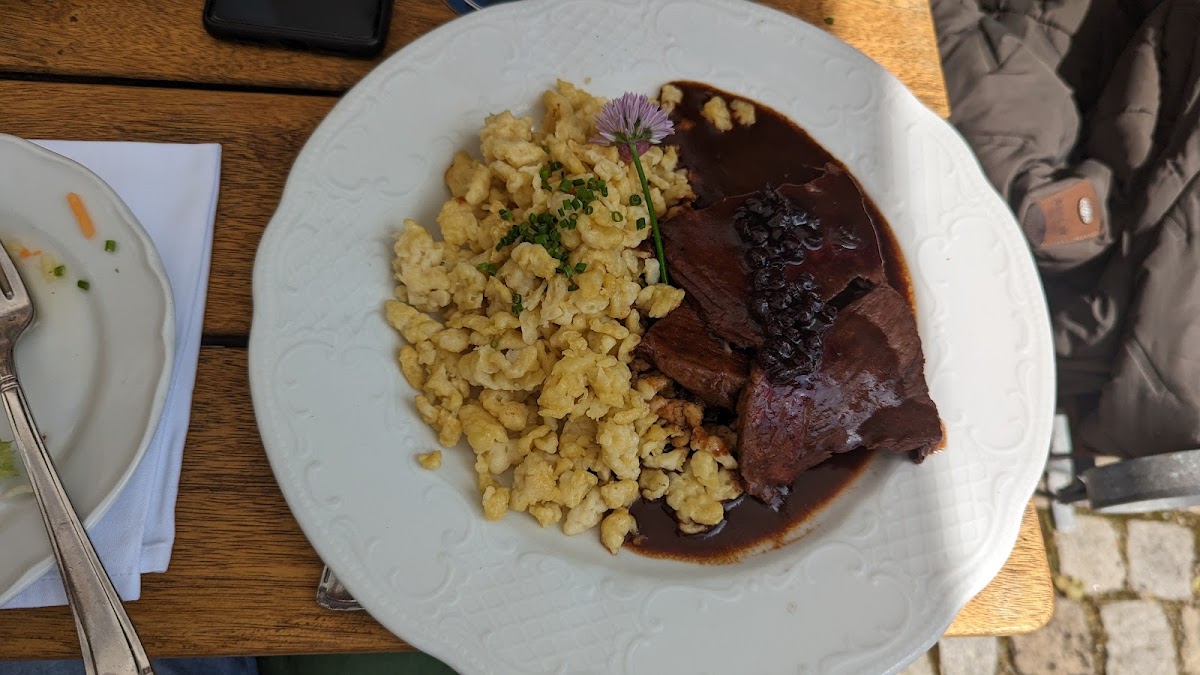 The menu at Roming Gaststätte is a true reflection of the region’s culinary heritage, offering everything from classic Bavarian dishes to seasonal specialties. Whether you're a fan of sausages, schnitzels, or freshly baked bread, the restaurant ensures that each dish is prepared with the finest ingredients and traditional techniques. A particular highlight is the pork knuckle, which is cooked to perfection with a crispy skin and tender meat, served with a side of sauerkraut and potatoes. The dish showcases the true essence of Bavarian comfort food.